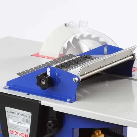Прижимное устройство Белмаш УП-06 является дополнительной оснасткой для деревообрабатывающих многофункциональных станков Универсал-2500Е; Могилёв 2.4. Применяется для безопасной обработки при строгании заготовок толщиной менее 60 мм. К станку крепится при помощи винтов. Настройка осуществляется с помощью ручки зажима вверху и ручки пружинного блока сбоку.
