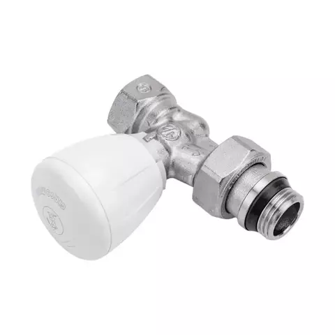 Прямой ручной клапан Giacomini R6X033, хромированный, отвод с герметичной прокладкой. Регулирование температуры в этом случае осуществляется в ручном режиме – следует поворачивать рукоятку клапана, чтобы увеличить или уменьшить подачу теплоносителя и тепловую мощность отопительного прибора.