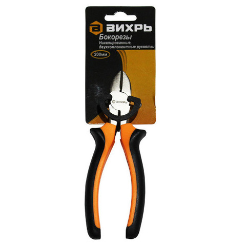 Бокорезы 200мм Вихрь предназначены для широкого спектра монтажных и ремонтных работ. Покрыты никелем, что защищает от коррозии и снижает износ при эксплуатации. Имеют удобные двухкомпонентные рукоятки. Перед зоной реза для пальцев есть специальные упоры.