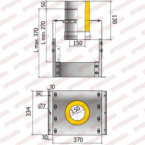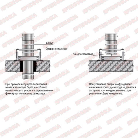 Опора является несущим элементом. Принимает на себя вес вышерасположенной конструкции и переносит его на фундамент или горизонтальное несущее перекрытие. Может использоваться для регулирования высоты в пределах 100 мм за счет телескопического устройства опорных ножек. Применяется в случаях, когда расстояние от тепловой установки до опорной стены здания слишком велико для использования других опорных элементов, а также в случае, когда трудно добиться качественного крепления к стене. Опора состоит из опорных ножек с монтажными отверстиями и площадки. Пластина площадки закрепляется на опорных ножках болтами с гайками. Опорные ножки жестко закрепляются на фундаменте или несущем перекрытии.