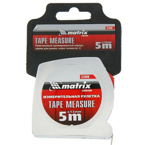 Рулетка 5 м x 13 мм Chrom MATRIX 31040 используется для проведения различных измерений. Имеет хромированный корпус, что говорит о прочности конструкции. Измерительная шкала нанесена с двух сторон, что добавляет удобство при использовании данной модели.