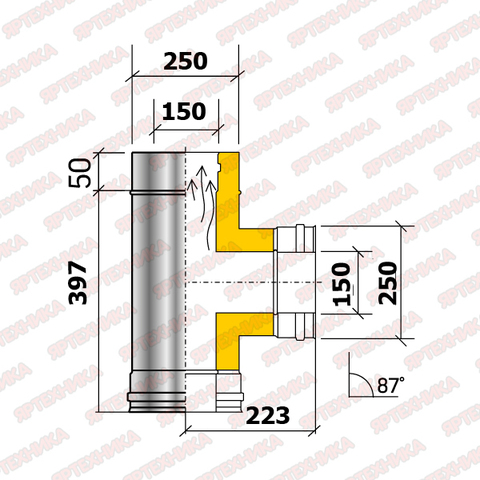 Тройники 87 ° рекомендуется использовать в сухом режиме, поскольку при замедлении потока газов при крутом повороте