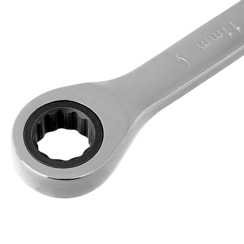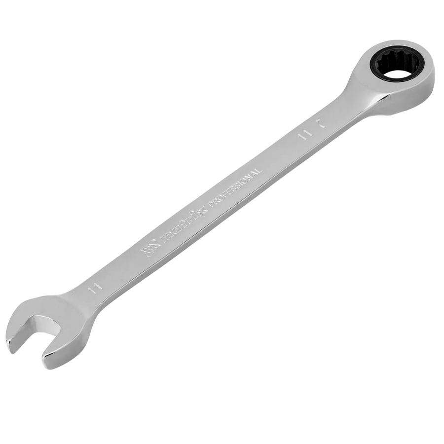 Комбинированный трещоточный ключ Matrix 14804 из стали CrV, с покрытием «зеркальный хром», размером 11 мм, позволяет быстро откручивать и закручивать болты и гайки. Рожковую часть удобно использовать там, где нет возможности полного охвата детали, а трещоточный механизм повышает удобство работы в труднодоступных местах.