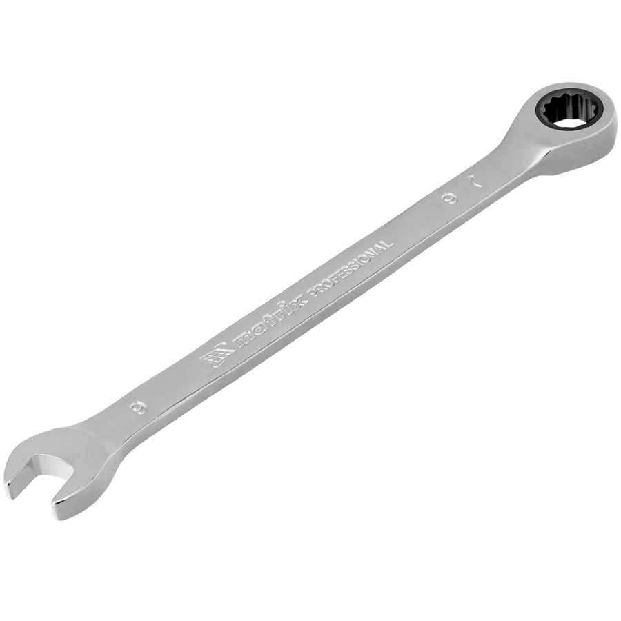 Комбинированный трещоточный ключ Matrix 14802 из стали CrV, с покрытием «зеркальный хром», размером 9 мм, позволяет быстро откручивать и закручивать болты и гайки. Рожковую часть удобно использовать там, где нет возможности полного охвата детали, а трещоточный механизм повышает удобство работы в труднодоступных местах.