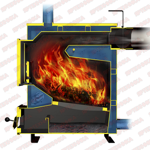 • Глубокая наклонная топка для использования длинных дров и равномерного распределения угля по всей глубине топки при засыпке.