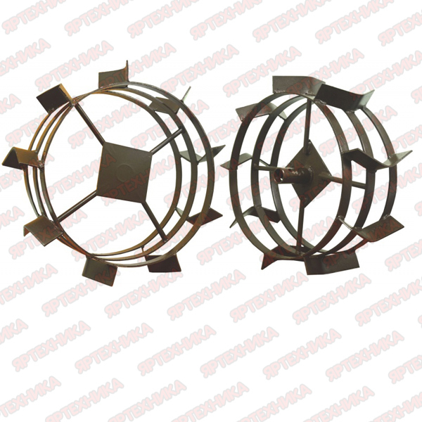 Заменяют резиновые колеса. Изготовлены из металла. Обеспечивают сцепление с грунтом.