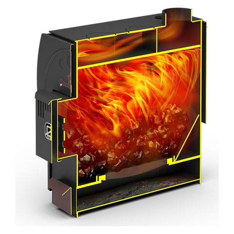 Быстрое нагревание воздуха и его равномерное распределение обеспечивают мощные конвекционные потоки, которые проходят в каналах между топкой и кожухом печи.