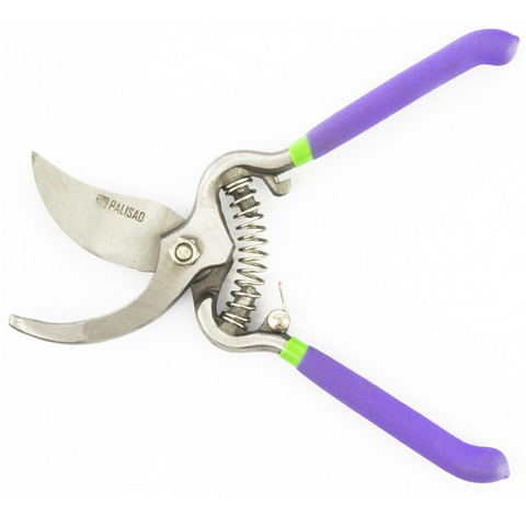 Секатор с коваными изогнутыми лезвиями, представляющими собой единое целое с рукоятками, и фиксатором в виде крючка. Для удобства работы рукоятки обрезинены в два слоя. Секатор целиком изготовлен из легированной стали, лезвия дополнительно закалены и остро заточены.